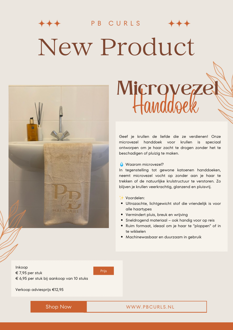 Geef je krullen de liefde die ze verdienen! Onze microvezel handdoek voor krullen is speciaal ontworpen om je haar zacht te drogen zonder het te beschadigen of pluizig te maken.